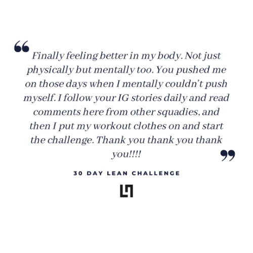 The Efficient Workouts, Tasty Food, and Instant Support is the successful recipe behind the LEANSQUAD. Even during quarantine, with out newborn twins, I have been able to stay on track through the short, body weight workouts, healthy, easy recipes and the constant support and motivation from 100's of Squadies all across the world doing it with me!